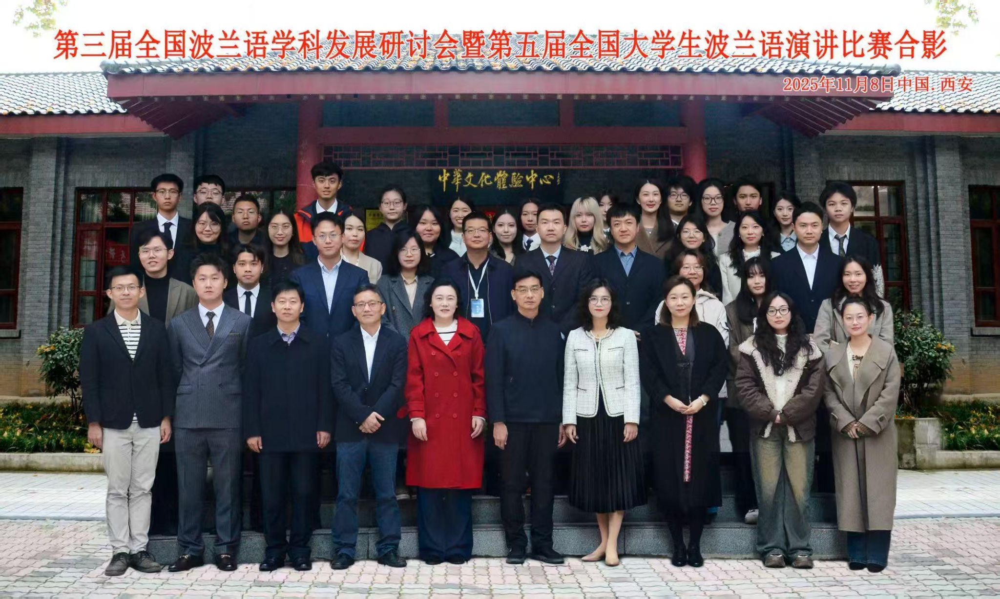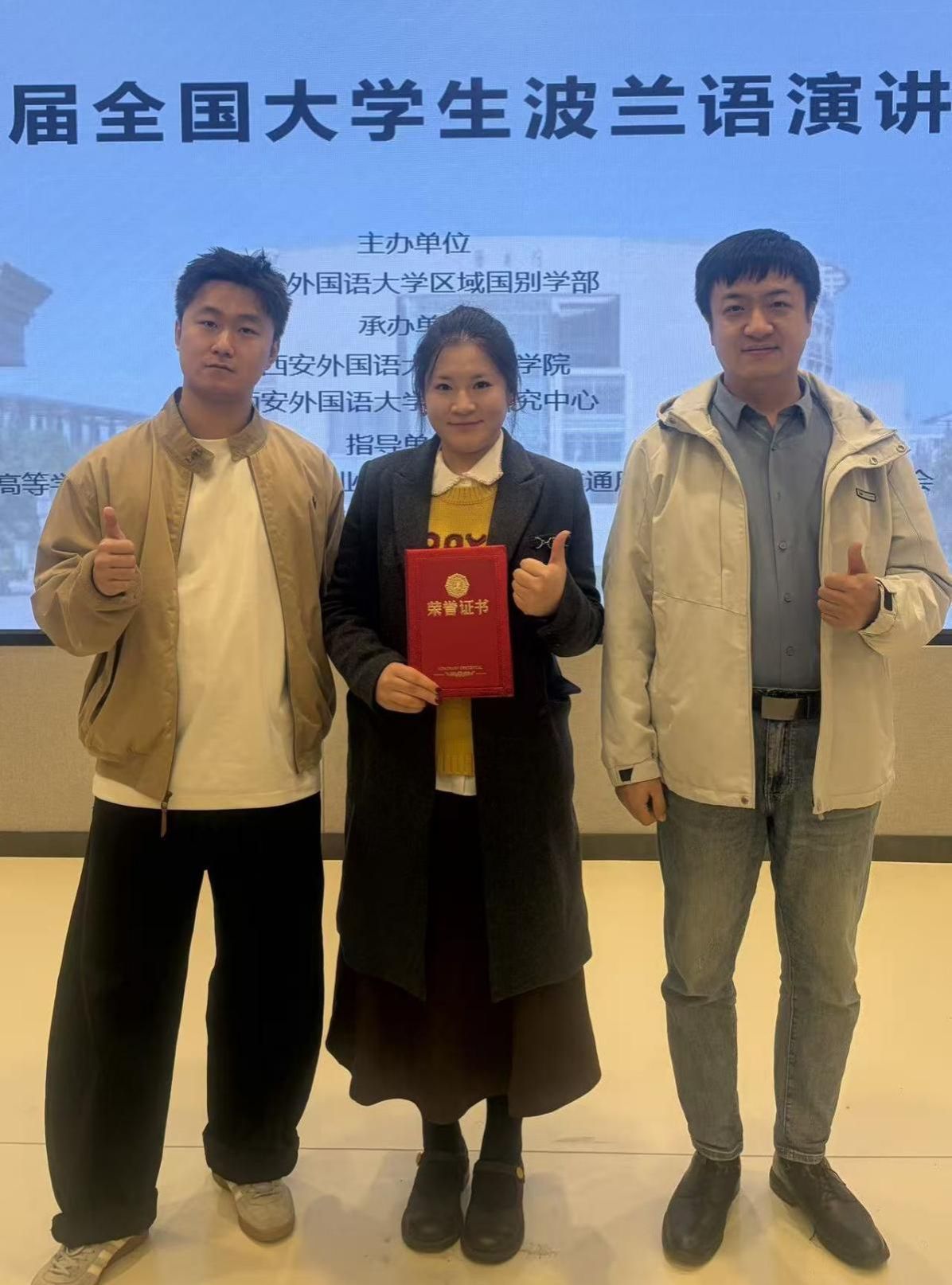 2025年11月7-8日,第五届全国大学生波兰语演讲比赛在西安外国语大学成功举办。来自全国14所高校近30余名选手参加了比赛。斯拉夫语学院波兰语系选派2024级本科生刘阳文泽和2022级本科生张宇嘉参加本次大赛。波兰语教研室主任彭小波和教师杨策带队参赛。